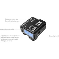 Пульт-радиосинхронизатор Godox X2T-N TTL для Nikon совместим со всеми осветительными приборами Godox, в которые встроена система беспроводной синхронизации Godox X. X2 обеспечивает стабильную, надежную и быструю передачу сигнала, что делает его хорошим выбором для фотографов, которые предъявляют высокие требования к осветительному оборудованию.