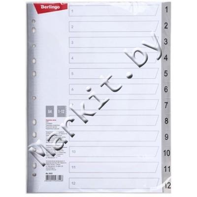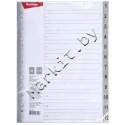 Разделители для регистраторов пластиковые Berlingo, 12 л., индексы по цифрам (1-12) Код: 32579