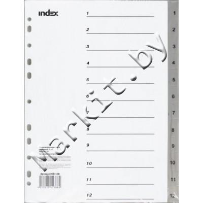 Разделители для регистраторов пластиковые Index, 12 л., индексы по цифрам (1-12) Код: 32607