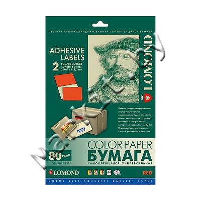 Самоклеящаяся бумага LOMOND (2110225) A4, 2 дел (210x148,5мм), красная, 50 листов Код: 12163
