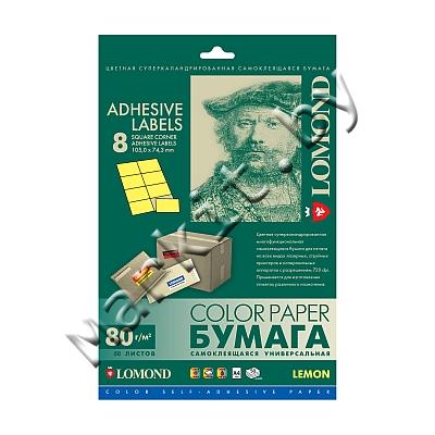 Markit » Бумага для принтера » Самоклеящаяся бумага LOMOND (2130045) A4, 8 дел (105x74,3мм), лимонно-желтая, 50 листов