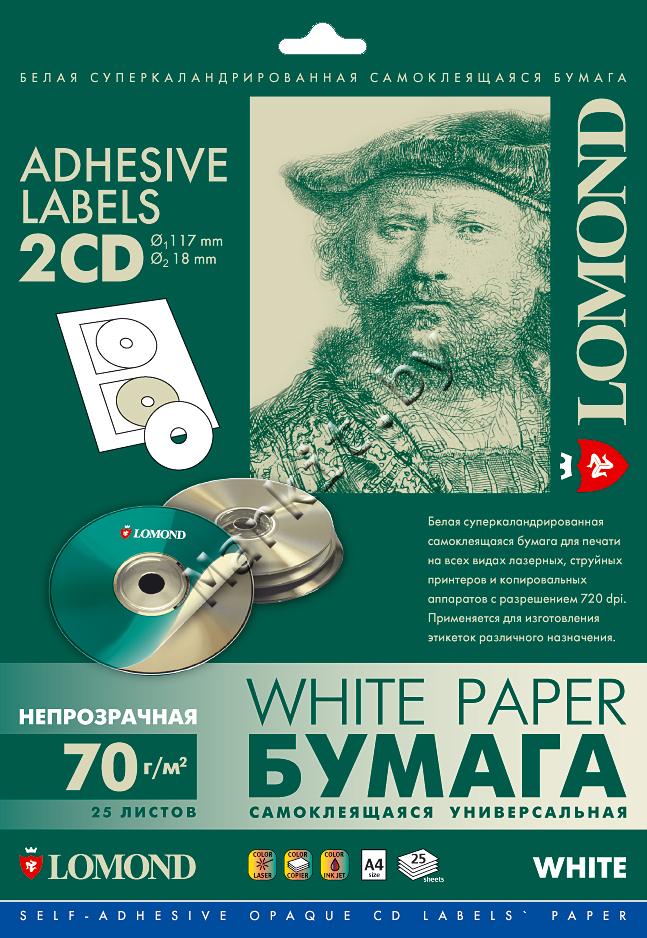 Самоклеящаяся бумага LOMOND (2101013) A4, 2 дел. для CD (d=117/18мм), 25 листов Код: 3567