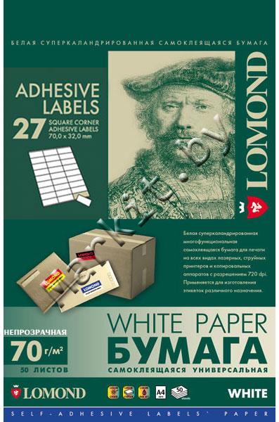 Самоклеящаяся бумага LOMOND (2100185) A4, 27 дел (70x32мм), 50 листов Код: 3563