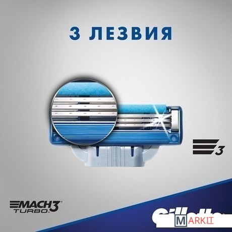 Markit » Бритвенные станки и лезвия » Сменные кассеты для бритья Gillette Mach3 Turbo (2 шт)