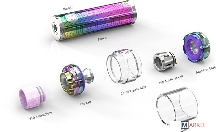 Комплектация 1хiJust 3 Battery1хELLO Duro Atomizer1хHW-N 0.2ohm Head1хHW-M 0.15ohm Head1хUSB Cable 2хUser ManualsSpare Parts