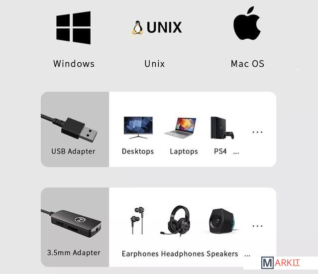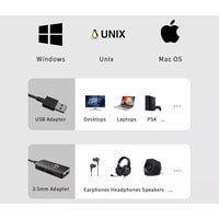 Основные особенности:- совмещенный небалансный разъем 3.5 мм, для подключения акустических систем, наушников или микрофонов- приглушение микрофона (mute)- регулировка громкости на корпусе- длина кабеля 1.2 мСовместим с Windows, MacOS и Linux.