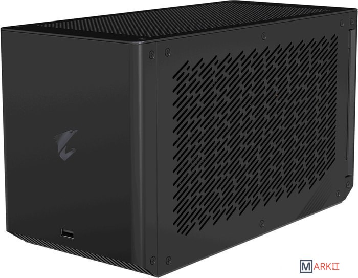 В корпусе установлен 450 Вт блок питания и LED-подсветка. Для подключения к компьютеру GIGABYTE AORUS RTX 2080 Ti GAMING BOX использует интерфейс Thunderbolt 3. Для подключения периферии предусмотрено 3 USB 3.0 порта.