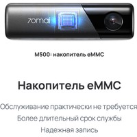 - Отличное качество изображения с высоким разрешением 2592 x 1944, регистрация номерных знаков, дорожных знаков и других критически важных деталей на дороге. С помощью приложения 70mai вы можете просматривать отснятый материал в реальном времени непосредственно на своем телефоне.- Чрезвычайно широкое поле обзора 170° позволяет лучше регистрировать действия с обеих сторон от автомобиля — там, где вероятность столкновения наиболее высока.- Используйте систему ADAS: она контролирует ваше окружение и предупреждает о проблемах безопасности голосовыми оповещениями. Расширенная система ADAS M500 предупреждает пользователя о возможности таких событий, как съезд с полосы движения, фронтальное столкновение, приближение к движущемуся транспортному средству и наезд на пешехода.- Благодаря встроенному накопителю eMMC 5.1 вам больше не нужно покупать приобретать отдельную карту памяти и обслуживать ее. Высокие скорости чтения и записи M500 (до 230 и 150 Мбит/с, соответственно) позволяют избежать распространенных проблем, таких как пропуск кадров и ошибки карты памяти.- Если вы хотите сделать снимок или начать запись, вы можете дать соответствующие голосовые команды видеорегистратору, когда он включен.*Голосовое управление доступно только на английском языке.