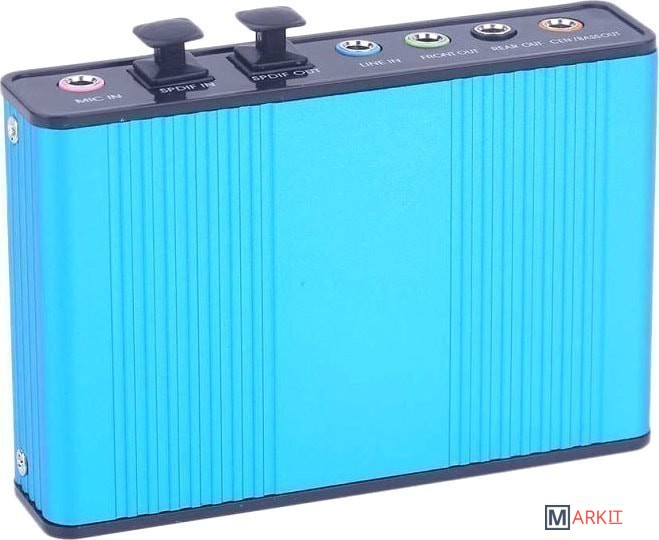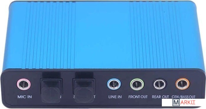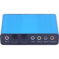 Внешняя звуковая карта USB 5.1/7.1-канальная выводит аналоговый звук (3xjack 3.5mm) или цифровой звук (Toslink/SPDIF) из компьютера или ноутбука и предназначена для подключения акустики 5.1/7.1 с 3-мя разъемами jack 3.5mm (или через дополнительные кабели 6 разъемов тюльпаны/RCA).– Поддерживает 32 кГц, 44.1 кГц. (в обоих случаях требуется поддержка контроллера или программного обеспечения) и частота дискретизации 48 кГц при цифровой записи, 48 кГц при воспроизведении аналогового звука.– В режиме цифрового воспроизведения адаптер принимает аудиопоток через интерфейс USB и передает аудиоданные в соответствии со стандартами cnsumer интерфейса AESEBU, IEC60958, SPDIF.– В режиме цифрового воспроизведения может передаваться только аудиоканал ИКМ R1 5.1.– В режиме аналогового воспроизведения поддерживает 6 каналов программного обеспечения аналогового воспроизведения.– В режиме цифровой записи адаптер принимает сигнал через цифровой аудиовход SPDIF и передает его обратно в ПК через USB.– Три частоты выборки, включая 32 кГц, 44.1 кГц, автоматически блокируются внутри системы. В режиме аналоговой записи фиксированная выборка 48 кГц по аналоговой аудиозаписи.